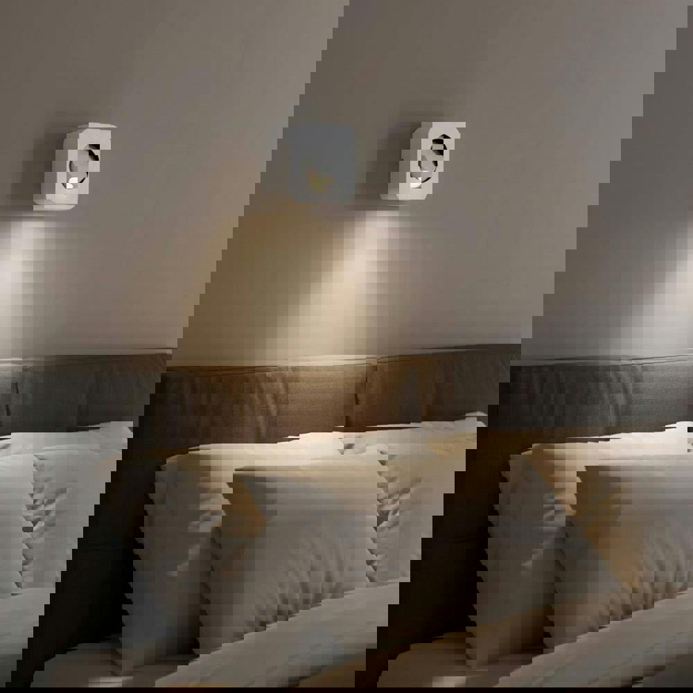 The minimalist look and feel of this white wall mounted bedside lamp is one to consider if you are looking for a clutter free design to your bedroom. The reading light uses a top quality 3 watt CREE LED that produces 120 lumens of light perfect for reading under. The switch on this light is a tilt style switch push the light out from the body case and the light turns on tilt it back into the back case it turns off.