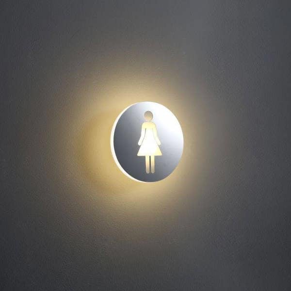 This elegant round illuminated ladies toilet sign features a laser-cut female silhouette on a 162mm aluminium faceplate. Powered by efficient 4-watt SMD LEDs delivering 400 lumens, it's ideal for hotels, offices, and commercial spaces.