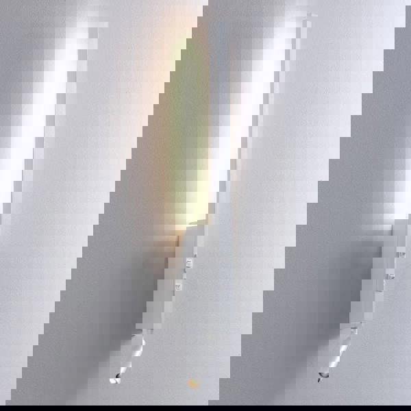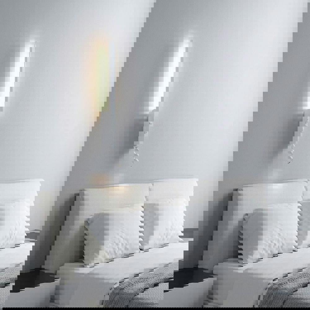 Combining a stylish wall light and functional reading light this modern white finish bedside wall light with reading light uses a 5 watt CREE LED to shine back on the wall for ambient lighting and an adjustable 3 watt reading light for bedroom reading applications. Features 2 separate switches on the body of the light to allow you to control each light individually.