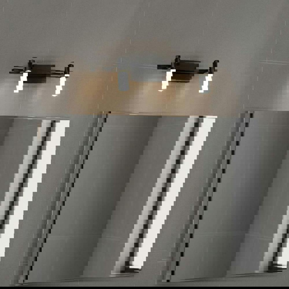 The LWA193 is a 6-watt black wall light for bathroom mirrors featuring two adjustable 3-watt CREE heads delivering 240 lumens of warm white light. Its aluminium construction with black anodized finish and frosted acrylic shades minimizes glare, making it ideal for bedroom and bathroom mirrors.