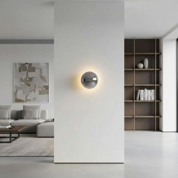 The polished chrome construction pairs seamlessly with an acrylic diffuser that creates a distinctive halo effect, casting light artfully against your wall surface. Deploy multiple units to craft a bespoke lighting installation that functions as both functional illumination and architectural statement piece. Ideal for feature walls and accent lighting applications where precision engineering meets aesthetic ambition.