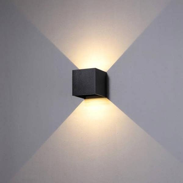 This square up and down garden wall light measures 100mm high, 100mm wide and projects 100mm from the wall. Made from high quality aluminium and finished in black this light provides a nice compact and modern look.