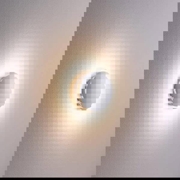 This elegant indoor decorative wall light fixture delivers sophisticated ambient illumination through its innovative design. Light projects inward against the shade's interior surface, creating a distinctive halo effect that softens and diffuses across surrounding walls.