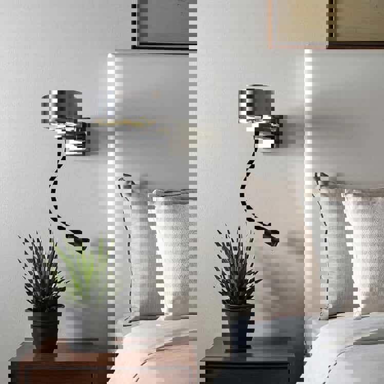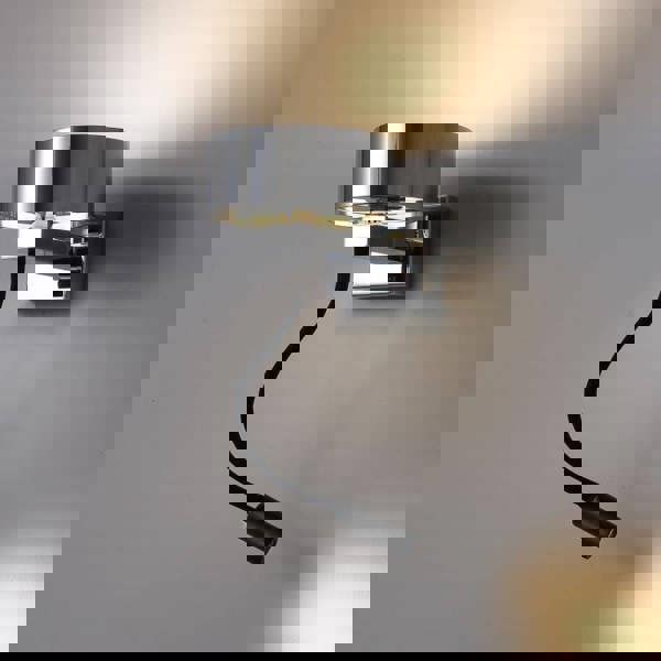 There are two switches for this LED reading lamp located on the lamp's back plate one switch operates the main light the second switch operates the reading light on the flexible light. The flexible arm on the reading light can be adjusted so that the beam of light can be directed wherever you need the light for easy reading.