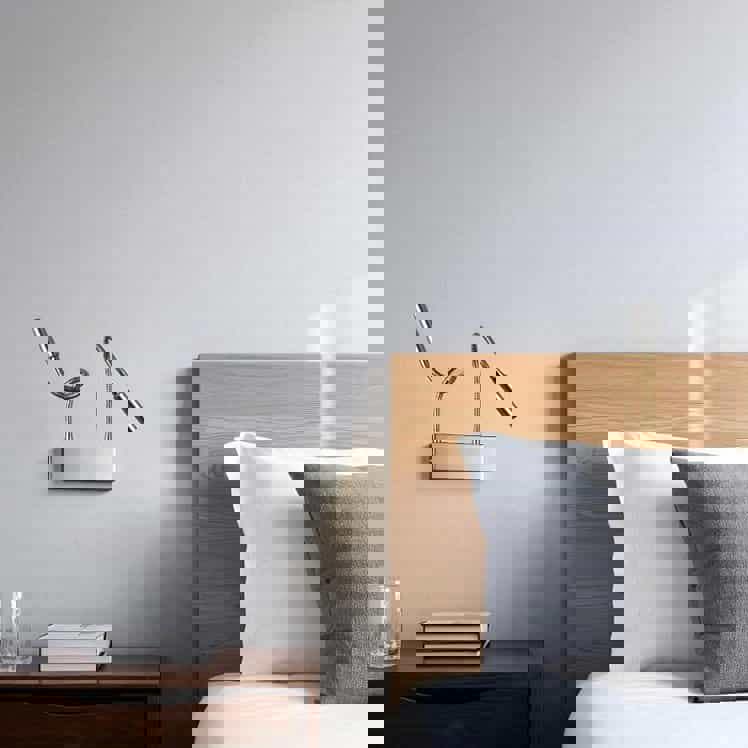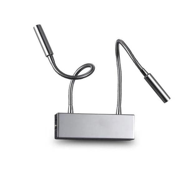 Dual LED over bed reading lights mounted on a single chrome backplate, perfect for couples sharing a bed. Each flexible arm delivers 70 lumens of focused light, allowing independent positioning for comfortable reading. The polished chrome finish complements any bedroom décor. Both lights operate via a single convenient switch. Ideal for bedside reading without disturbing your partner.