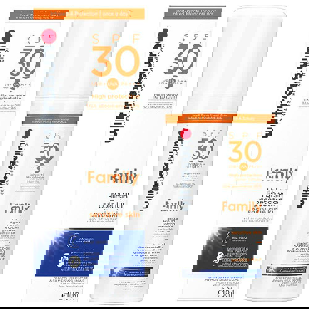Ultrasun's Super Sensitive Family SPF 30 comes with an airless pump dispenser to prevent product deterioration and contamination.