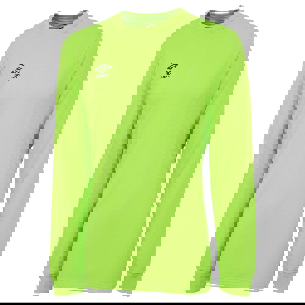 This long-sleeved jersey from Umbro comes in Green Gecko and uses micro eyelet fabric. It is made from micro polyester and polyester, with a logo design for a clean, sporty look.