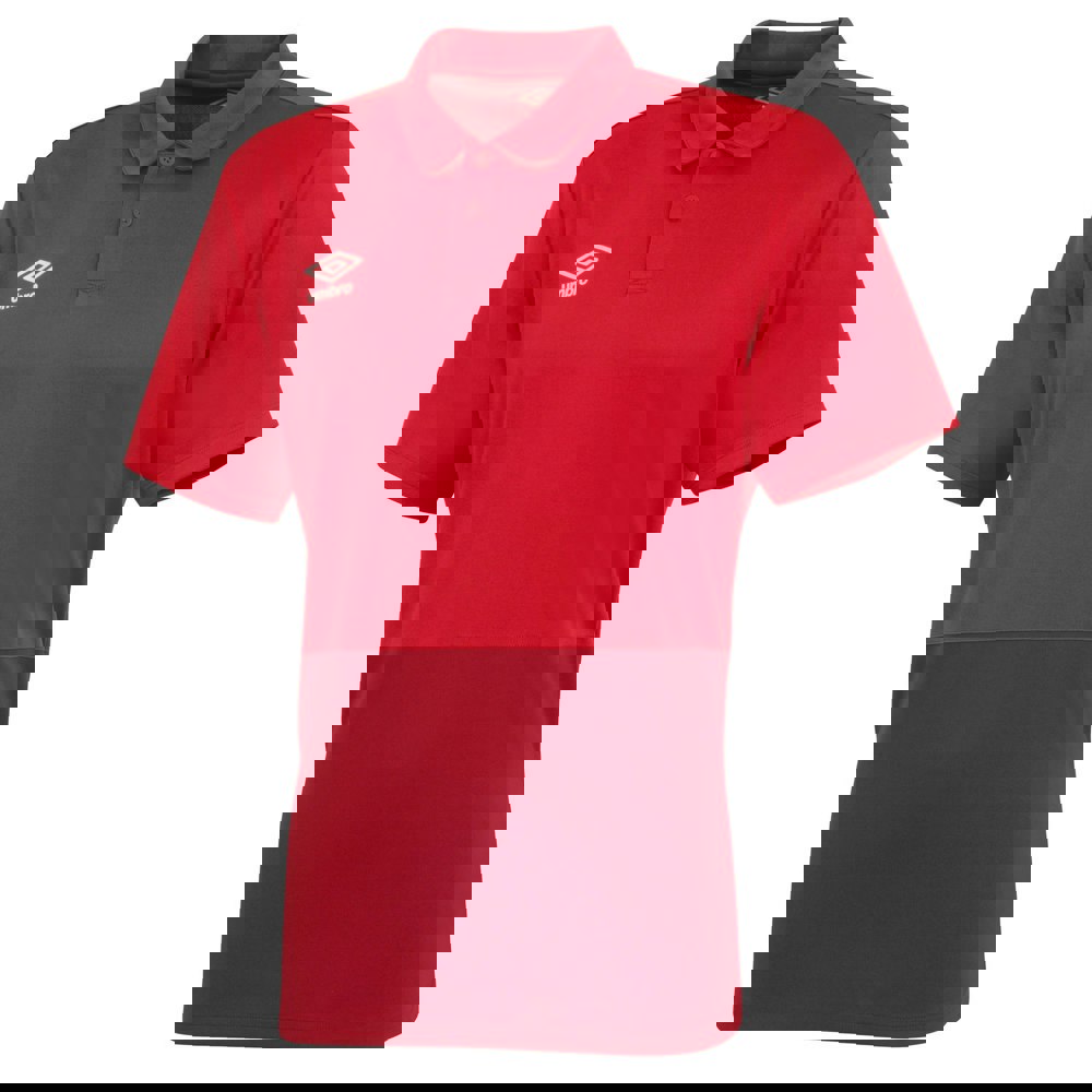 This boys’ polo shirt from Umbro is made from 100% polyester. It comes in Vermillion and Jester Red, with a contrast panel design and a logo detail for a bold, sporty look.
