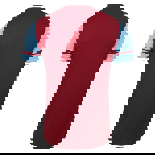 This children’s Cavelle jersey from Umbro comes in new claret with sky blue contrast details. It is made from 100% polyester with a lightweight feel and a regular fit. The design includes a logo, a round neck with contrast trim, and short sleeves in a contrasting colour. A dropped hem completes the silhouette.