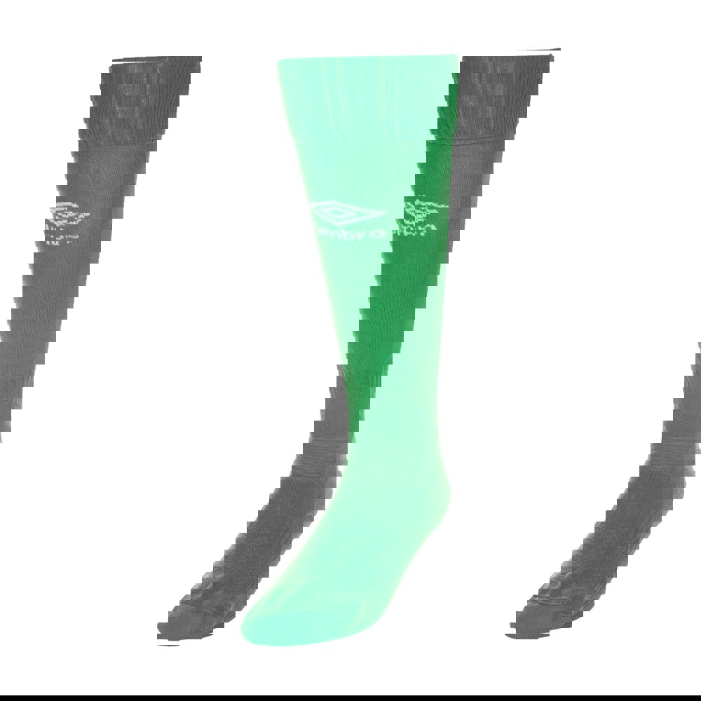 Umbro Classico socks in emerald, made from micro mesh fabric with a logo design. The blend of 95% nylon and 5% elastane provides a close, flexible fit, while breathable fabric technology supports airflow during wear.