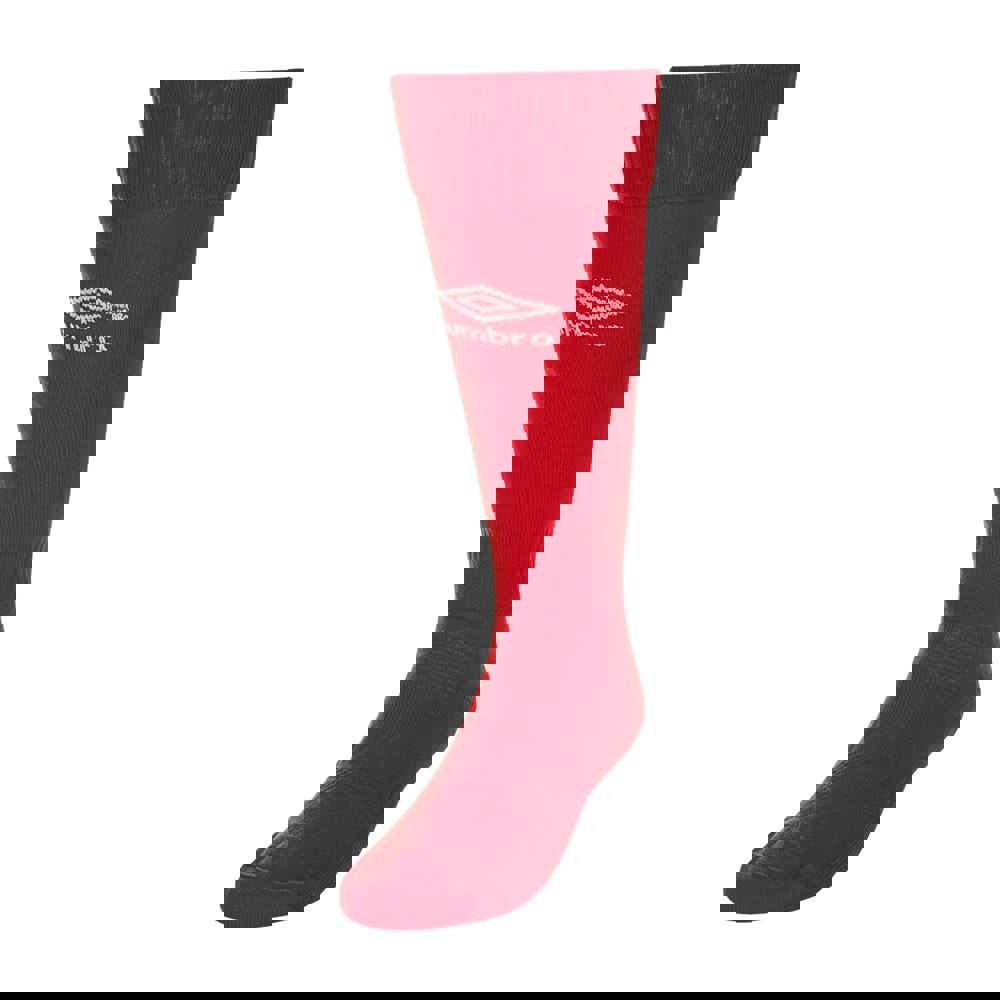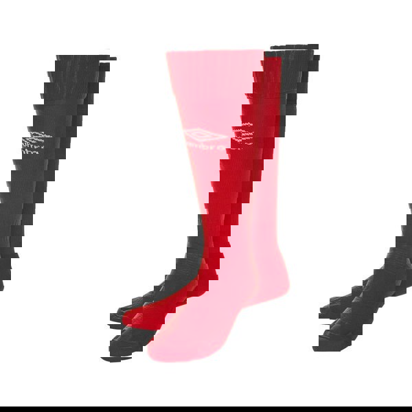 Umbro Classico socks for children and kids in vermillion, made from micro mesh fabric with a logo design. The blend of 95% nylon and 5% elastane provides a close, flexible feel, while breathable fabric technology supports airflow.