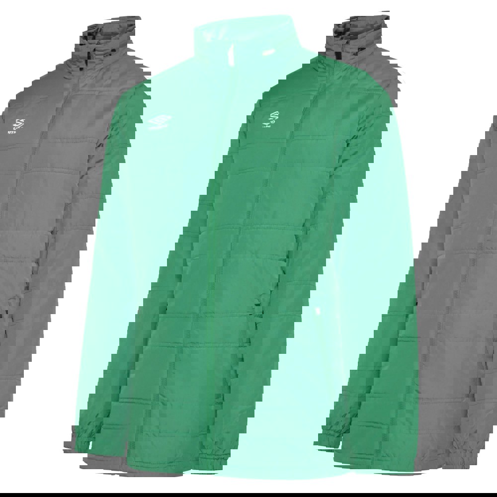 This children’s bench jacket from Umbro is made from 100% polyester with a polyfill filling. A quilted, padded construction is paired with a stacked logo design for a clean, sporty look.