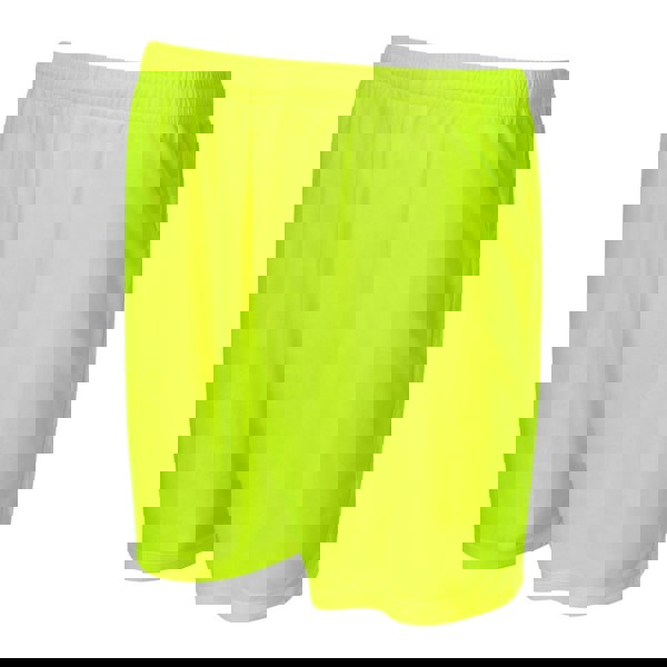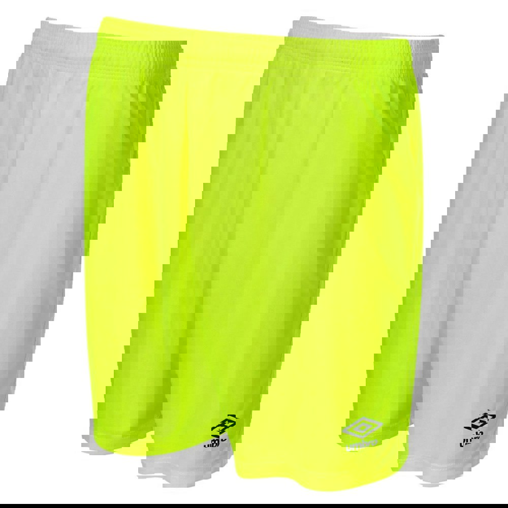 These Umbro Club II shorts for children are made from 100% polyester in micro eyelet fabric. The design includes a stacked logo and comes in Safety Yellow/Carbon.