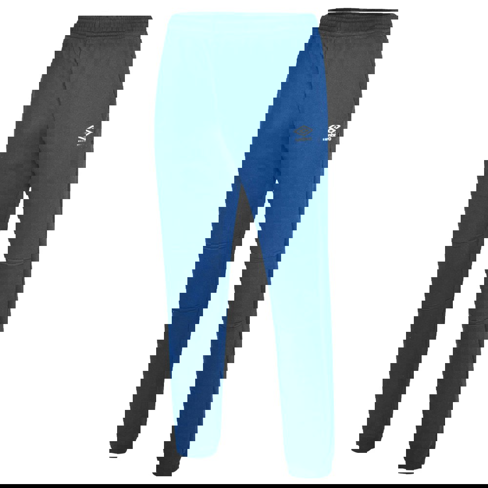 These Umbro Club leisure jogging bottoms for children and kids are made from an 80% cotton and 20% polyester blend. The design includes a stacked logo and comes in royal blue with white detailing.