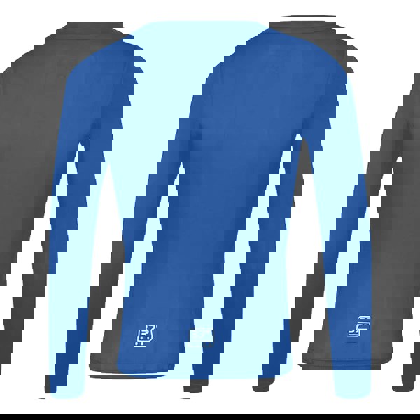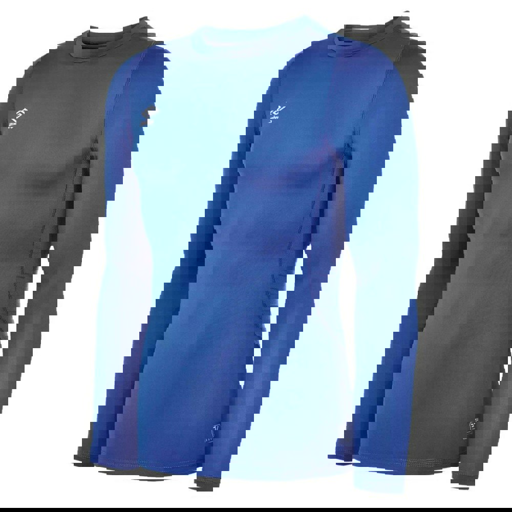This children’s Core long-sleeved base layer top from Umbro comes in royal blue with a stacked logo design. It is made from a blend of polyester and elastane, with mesh and single jersey fabric construction.