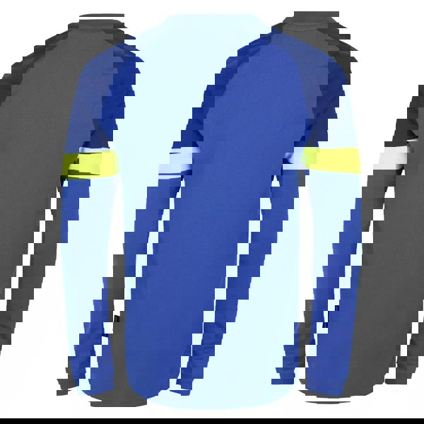 This children’s goalkeeper jersey from Umbro is made in technical fabric with moisture wicking technology. It has a crew neck and long sleeves, with a two tone look finished with a chevron and logo design.