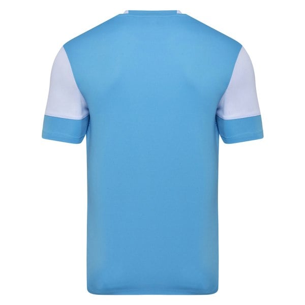 This Umbro children’s Vier jersey comes in sky blue and white with a graphic print and logo design. It has a crew neckline in self fabric and short sleeves for a clean, simple finish.