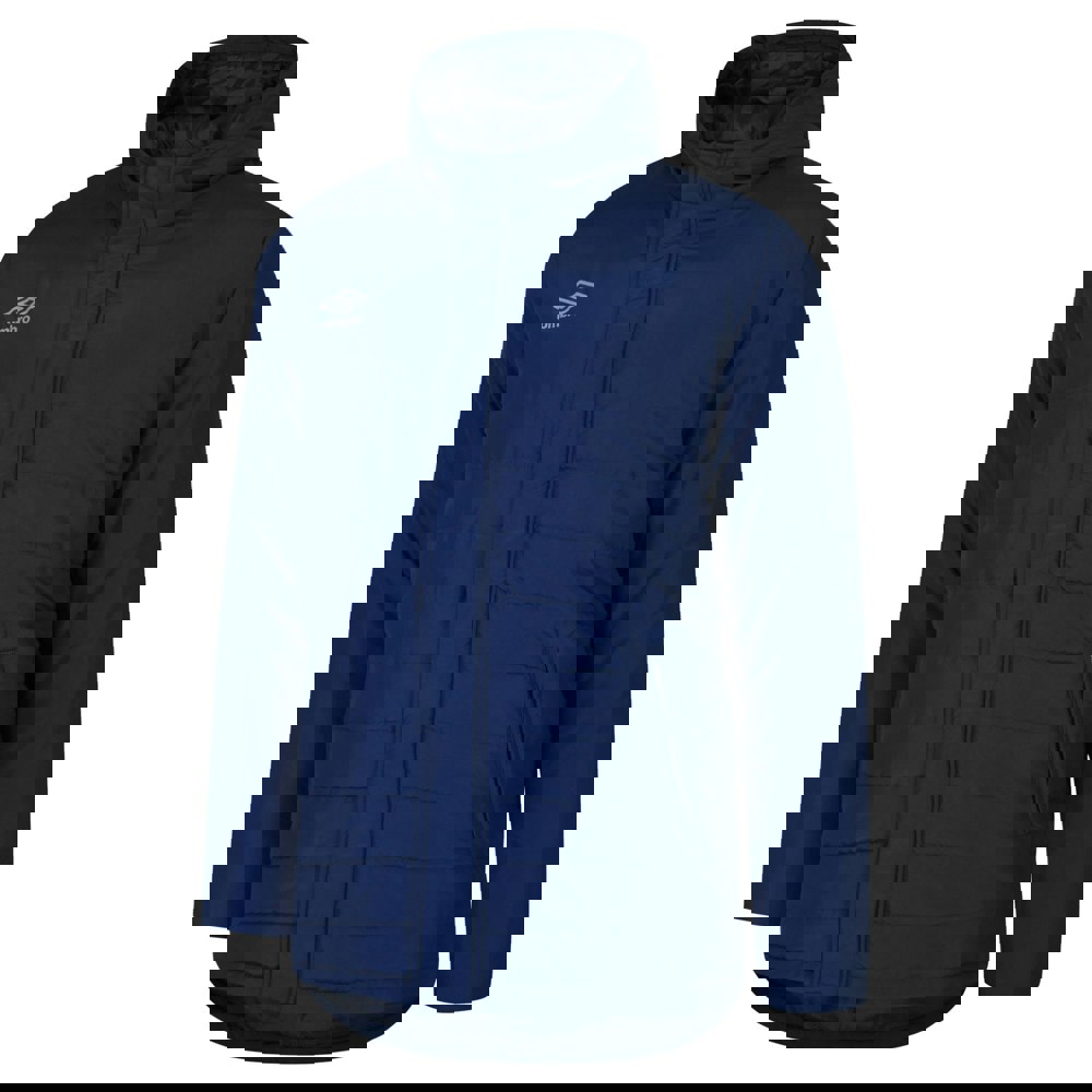 This children’s padded jacket from Umbro is made from 100% polyester and finished in navy with a logo design. The fabric uses water-resistant technology for added protection in wet conditions.