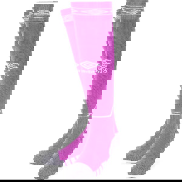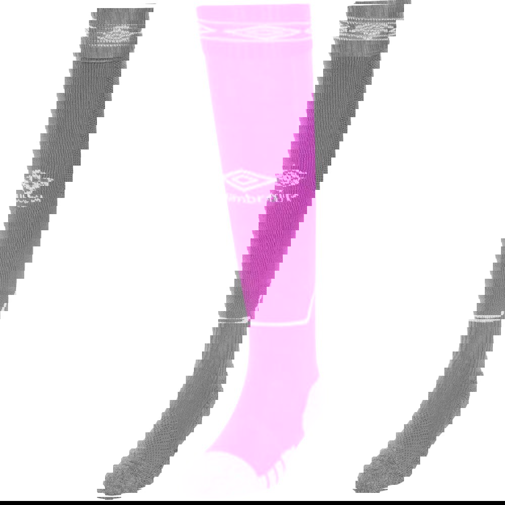 Umbro Diamond football socks are made from a blend of 75% polyamide, 20% cotton and 5% elastane. The fabric combines intarsia construction with micro mesh for a ventilated finish.