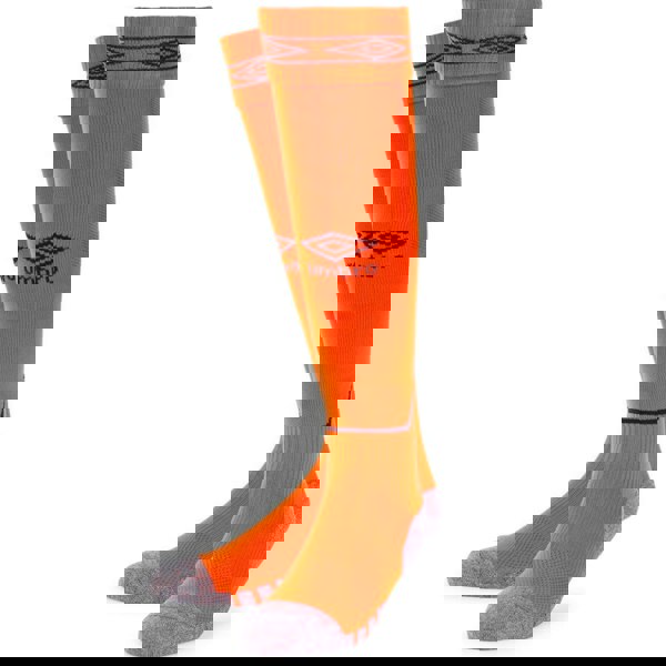 These Umbro Diamond football socks come in a shocking orange and black colourway with contrast detailing and a logo design. Made from a polyamide, cotton and elastane blend, they use intarsia and micro mesh fabric for a structured finish.