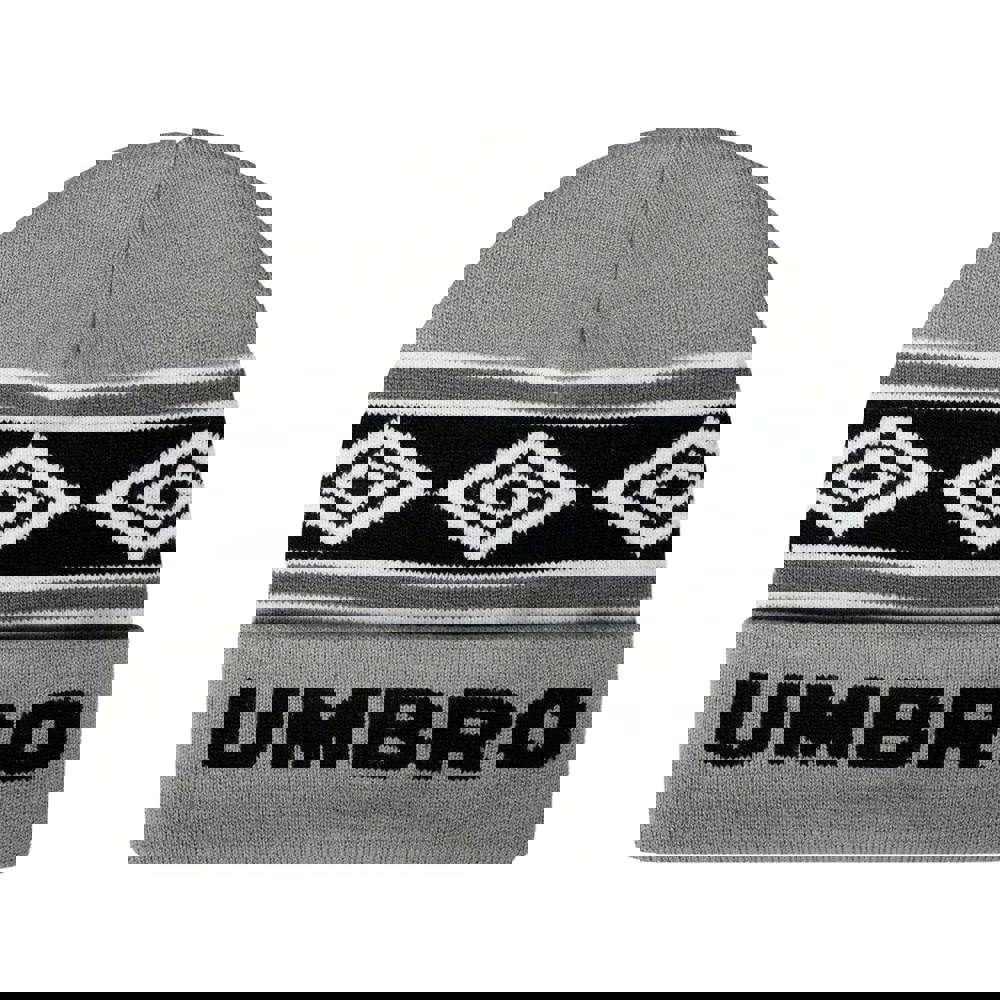 The Umbro Diamond Knitted Beanie is a patterned knitted hat designed for everyday wear. Finished in Ultimate Grey, Black and Brilliant White, it features a contrast diamond design with text detailing for a distinctive look.