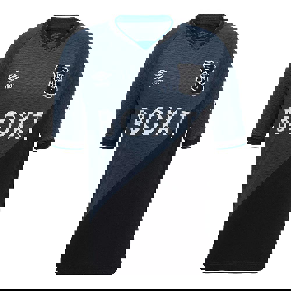 This kids’ short-sleeved third jersey from Umbro is officially licensed for Rangers FC 25/26. Made from 100% polyester, it uses cut and sew construction and includes breathable, lightweight, moisture-wicking fabric technology. The design combines contrast detailing with text and an embroidered logo.