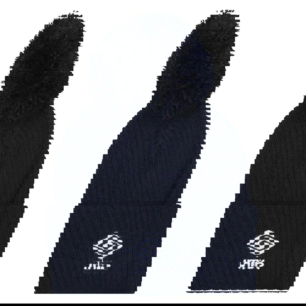 This kids’ bobble beanie from Umbro comes in navy and is made from 100% acrylic. It has a logo design and a turned-up cuff for a neat, structured finish. A bobble detail completes the look.