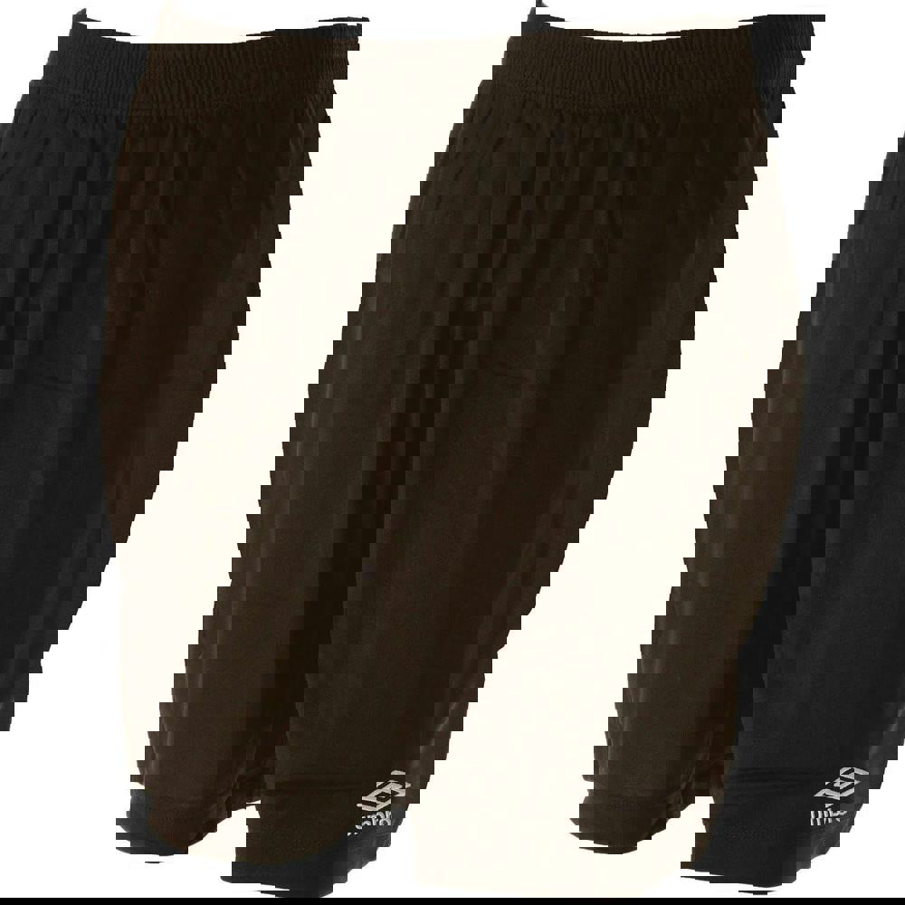 Umbro Kids Club II Shorts in black are made from 100% polyester with a micro eyelet fabric. The design includes a stacked logo for a clean, branded finish.