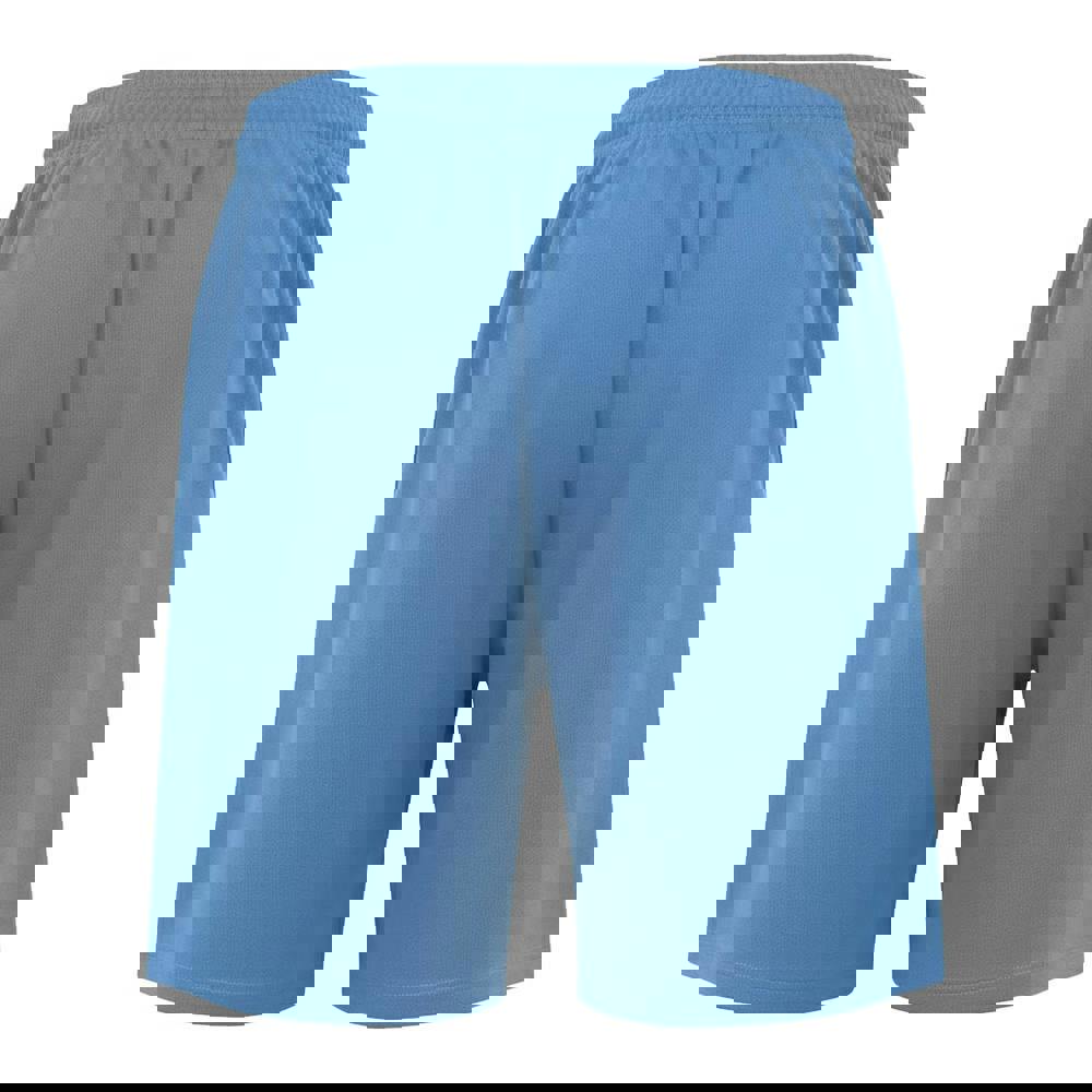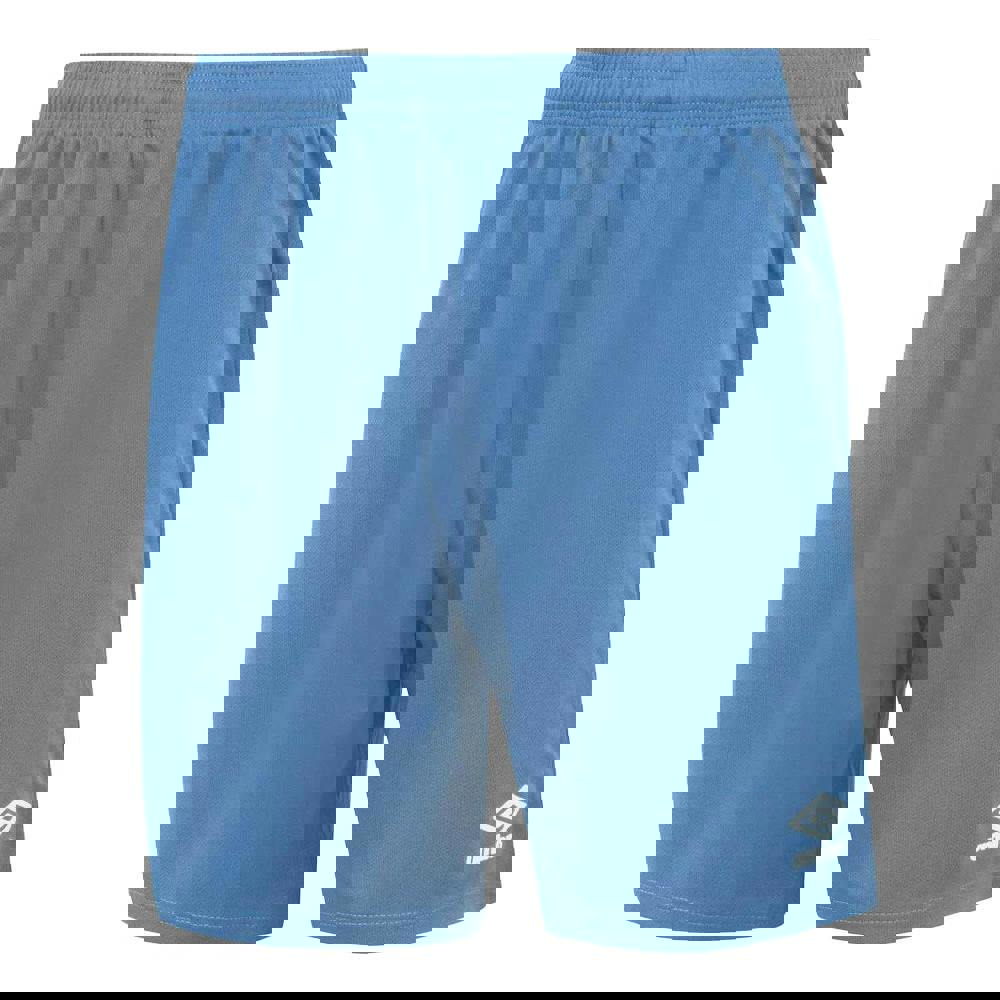 Umbro Kids Club Shorts in sky are made from 100% polyester. The design includes a logo with transfer-printed detailing. An elasticated waist and inner drawcord provide an adjustable fit.