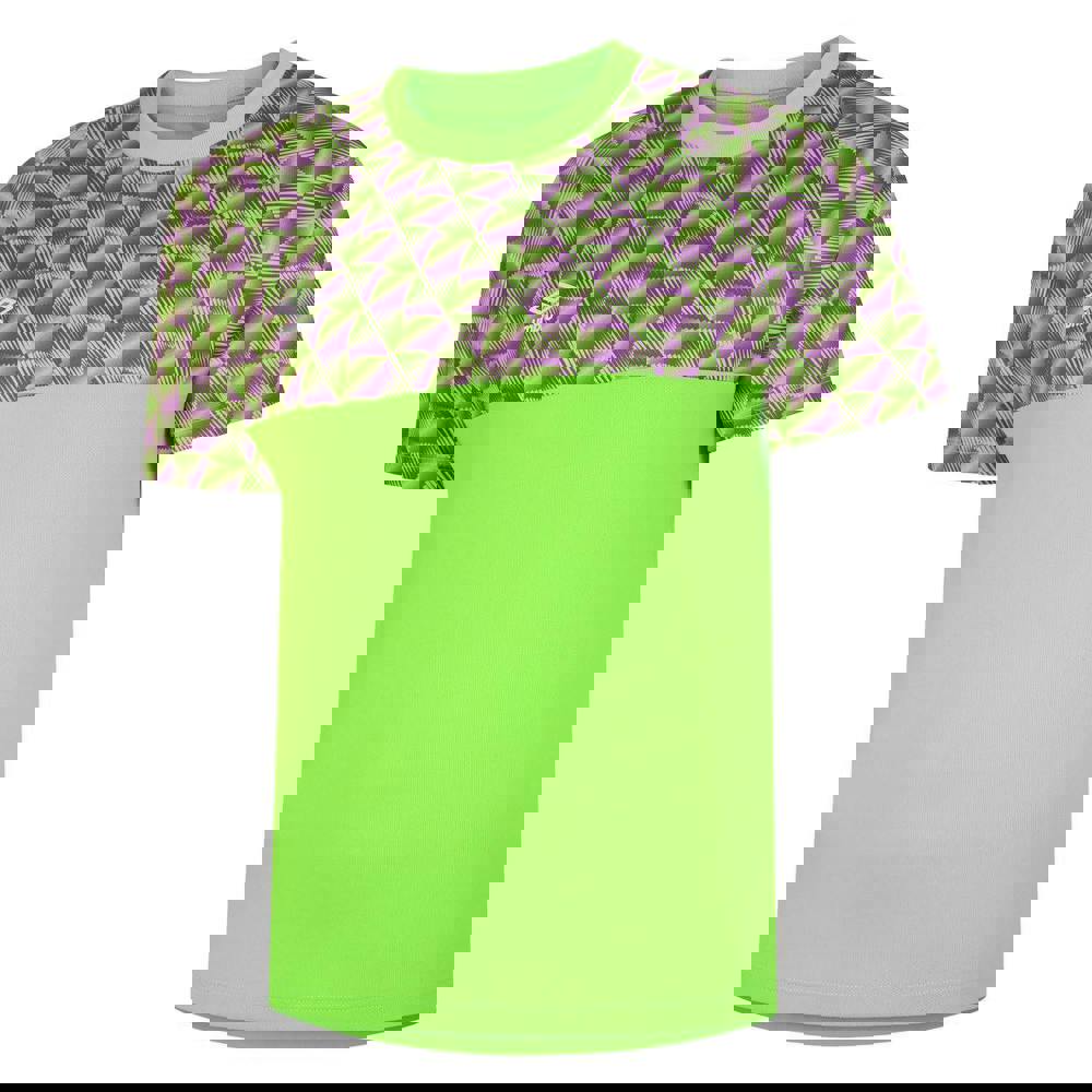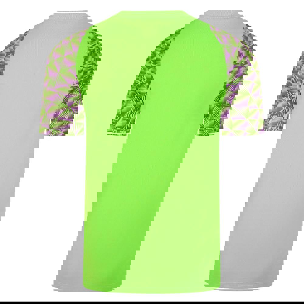 Umbro Kids Flux Goalkeeper Jersey in Green Gecko/Purple Cactus. Made from 100% polyester, this lightweight performance jersey has a regular fit with a ribbed crew neck and short sleeves. The design includes a graphic print and logo, and it is 100% officially licensed.