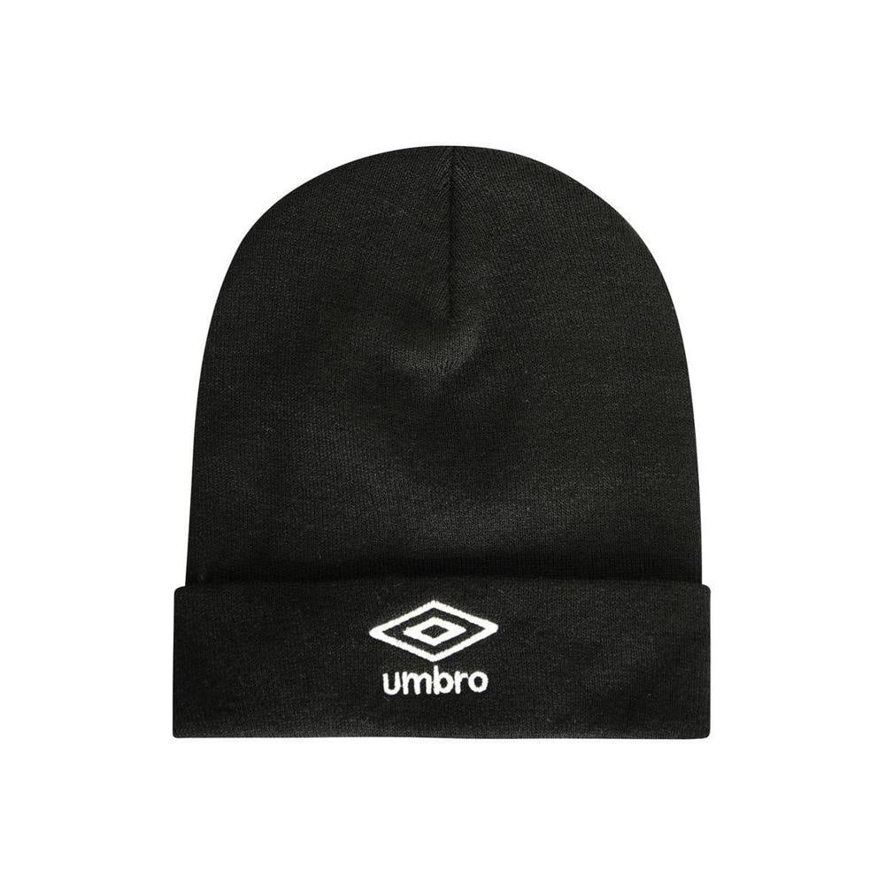 This kids’ beanie from Umbro comes in black and is made from 100% acrylic. It has an embroidered stacked logo on the front and a ribbed knit construction. A turned-up cuff completes the look for a neat, structured finish.
