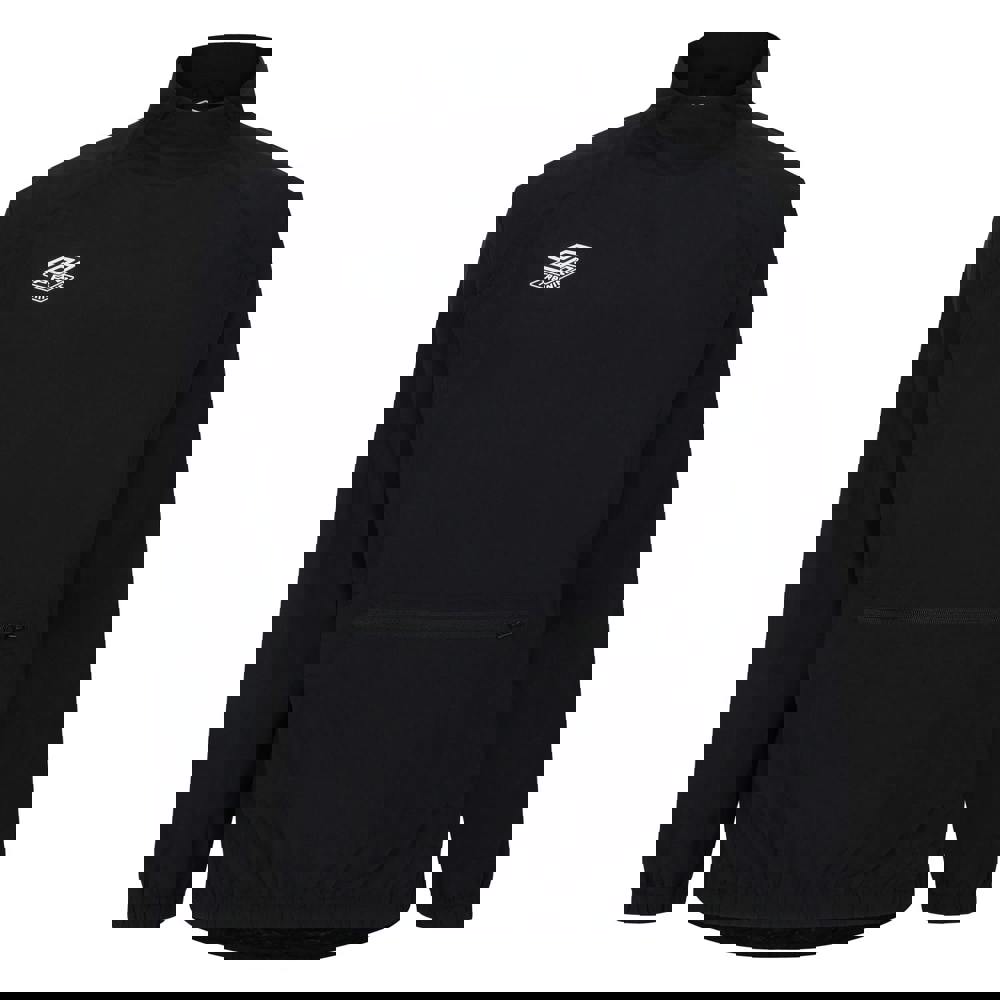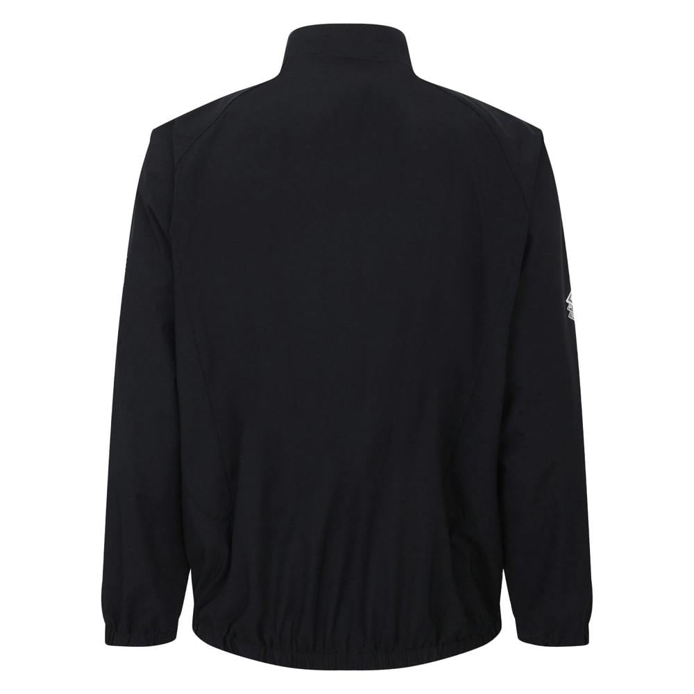 This kids’ training drill top from Umbro comes in black and is made from 100% polyester with a woven outer and mesh lining. It has a high neck and long sleeves, with elasticated cuffs and an elasticated waistline. A silicone logo adds a clean branded finish.