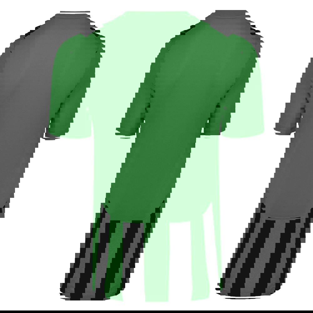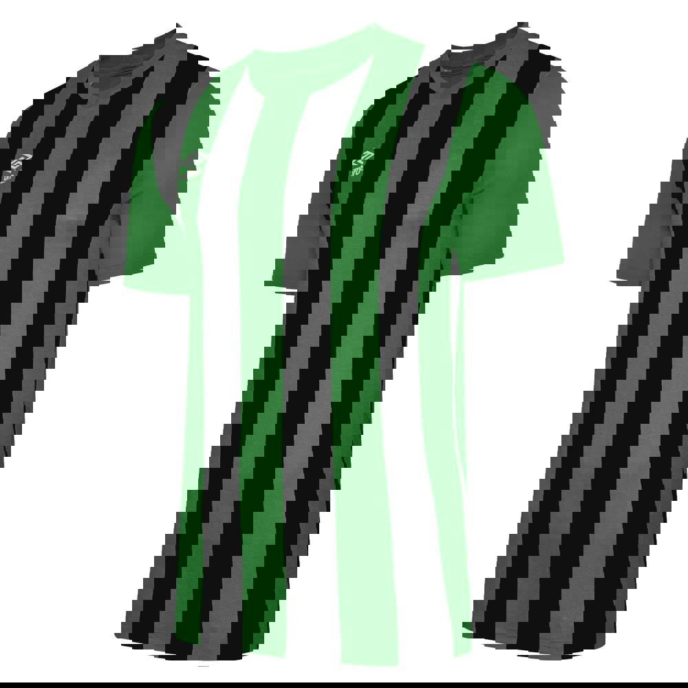 This kids’ Ramone jersey from Umbro comes in emerald and black with a marl and stripe design and logo detailing. It has a V-neck with a self-fabric neckline and short sleeves. Curved panels add shape to the overall look, while the lightweight fabric technology keeps the construction streamlined.