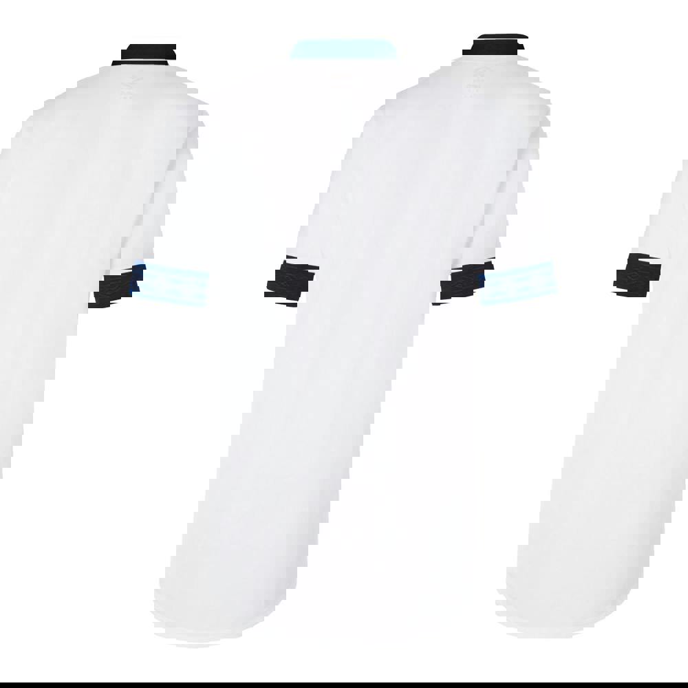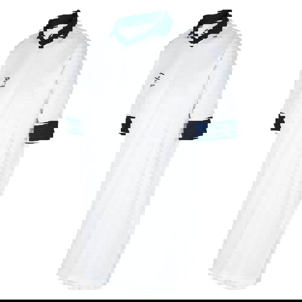 This kids’ Tempest jersey from Umbro comes in white and navy with a contrast finish. Made from a polyester and elastane blend, it uses micro eyelet and micro mesh fabrics for a distinctive textured look. The design includes a diamond motif and a stacked logo, keeping the detailing clear and graphic.