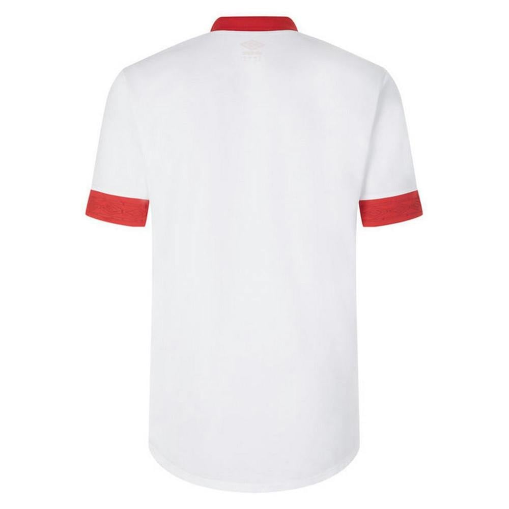 This kids’ Tempest jersey from Umbro comes in white with vermillion contrast detailing and a diamond and stacked logo design. Made from a polyester and elastane blend, it uses micro eyelet and micro mesh fabrics with a lightweight finish. A flat knit, turn down collar and short sleeves complete the clean, sporty look.