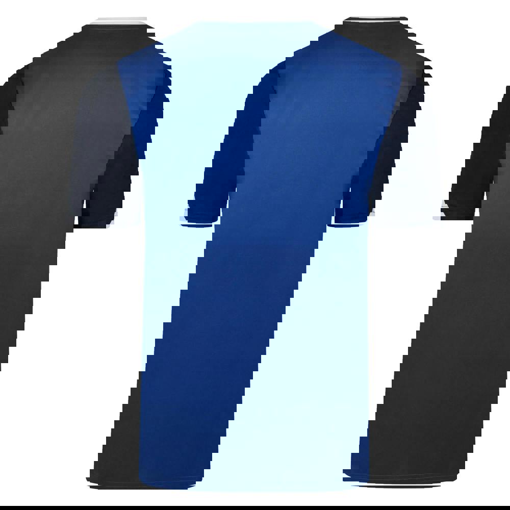 Umbro Kids Total Training Jersey comes in royal blue with dark navy and white contrast details. Made from 100% polyester micro eyelet fabric, it has a breathable, lightweight feel and temperature-regulating fabric technology. A contrast crew neckline and contrast sleeves add a clean, sporty finish, while the stacked logo detail completes the design.