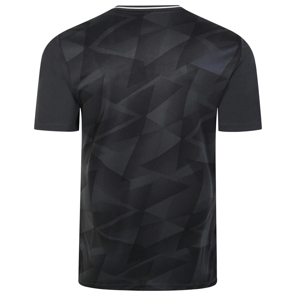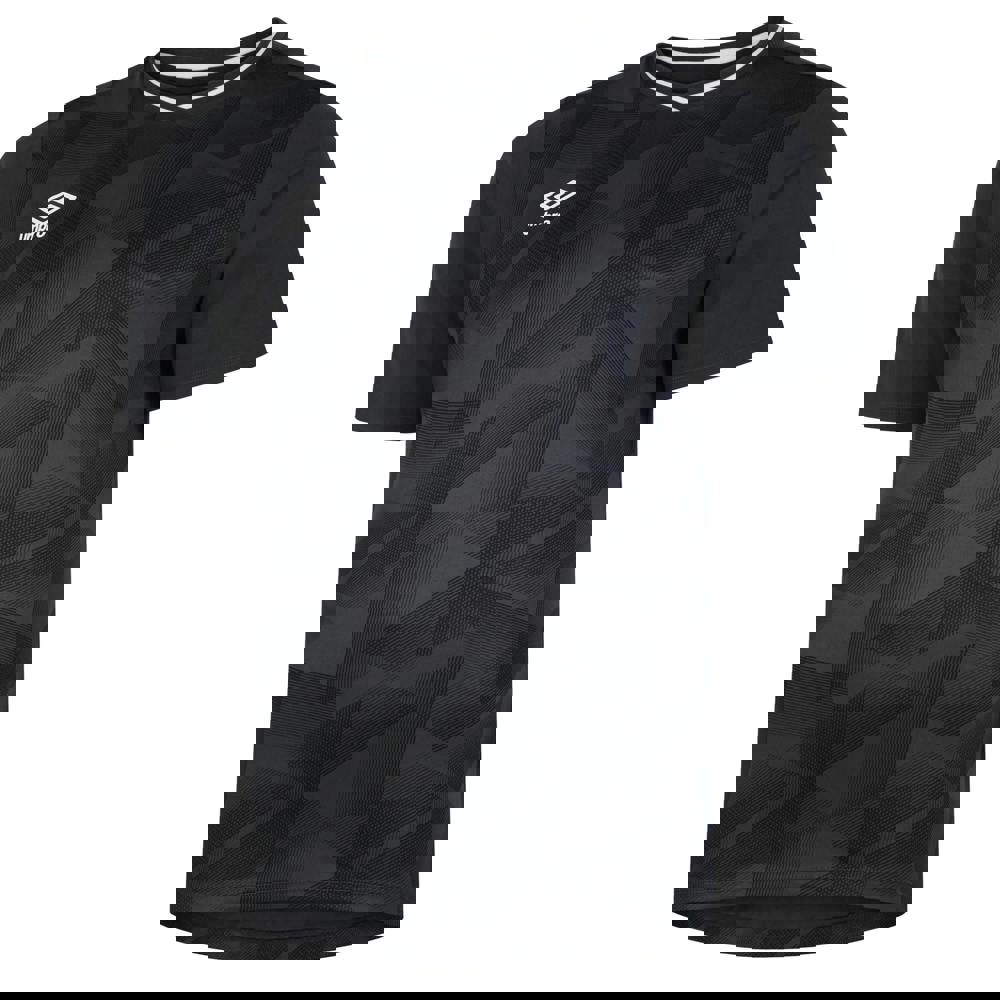 This kids’ short-sleeved jersey from Umbro comes in black/carbon with a graphic print and logo design. Made from 100% polyester, it uses an interlocking fabric construction. The neckline combines a crew neck shape with ribbing and a contrast stripe detail.