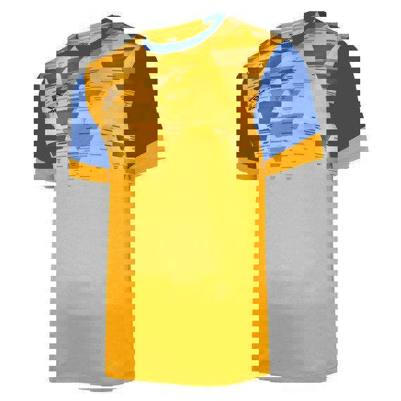 The Umbro Kids Vier Jersey comes in yellow with royal blue contrast detailing. Made from 100% polyester, it has a lightweight feel and a graphic print with a logo and sublimated finish. The neckline combines a crew neck shape with a contrast collar and self-fabric construction.