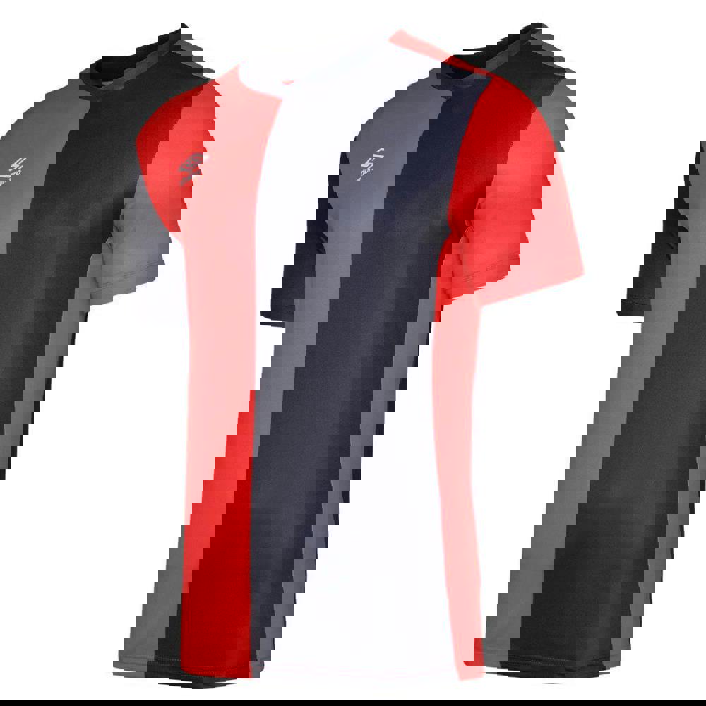 This short-sleeved jersey from Umbro is made from 100% polyester in a jersey fabric. It comes in a vermillion and black colourway with a colour block design and a stacked logo for a bold, sporty look.
