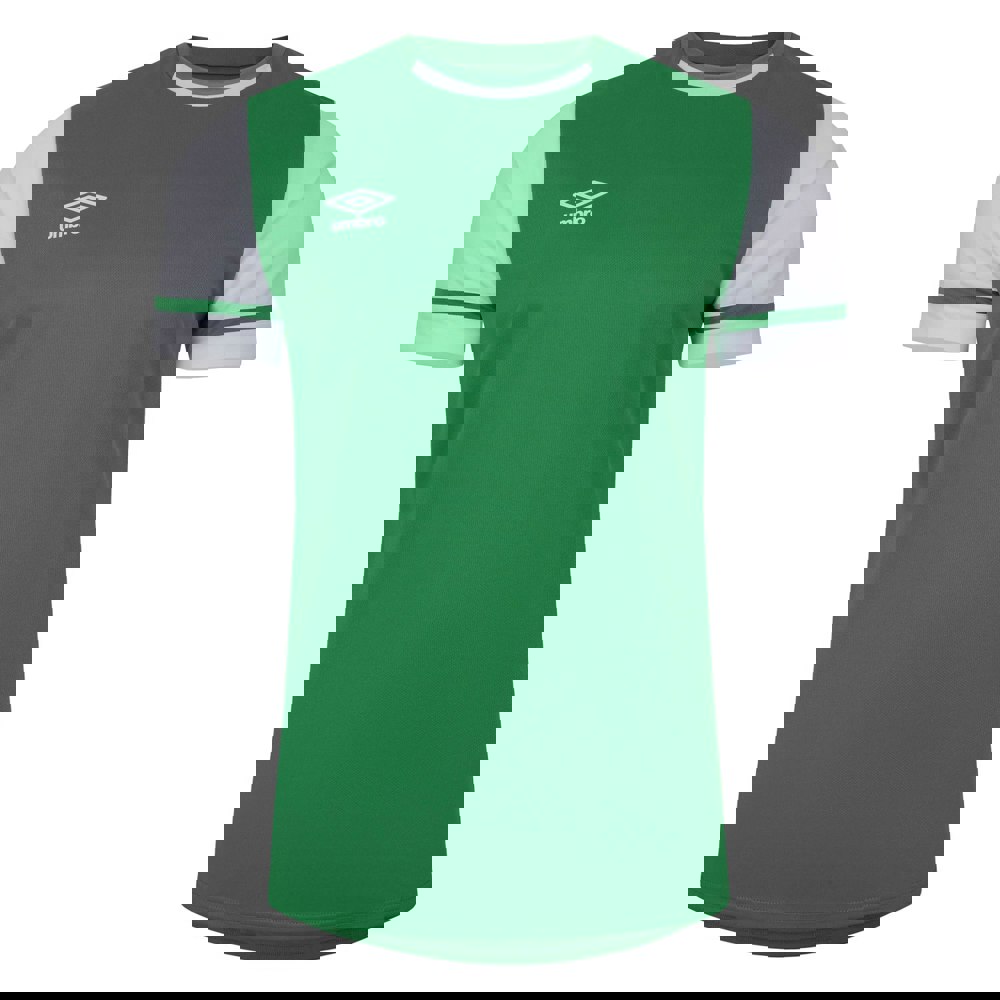 This Umbro Cavelle jersey T-shirt is made from 100% polyester with a lightweight jersey fabric. It has a regular fit and a dropped hem for a clean, modern outline. The design includes a logo and contrast detailing for a defined finish.