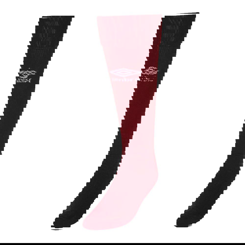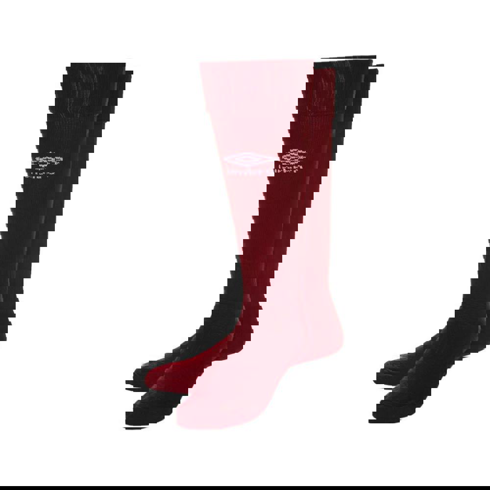 Umbro Classico socks in new claret. Made from micro mesh fabric with 95% nylon and 5% elastane, they combine a logo design with breathable fabric technology. The construction includes an elasticated cuff and ribbed ankle, with elasticated ankles for a secure feel.