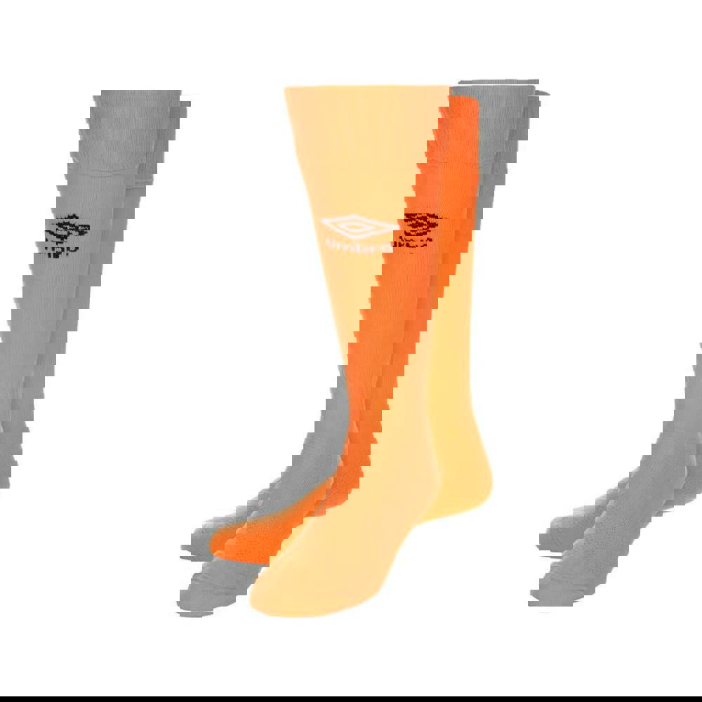 Umbro Classico socks in shocking orange with a micro mesh construction and logo design. Made from 95% nylon and 5% elastane, they include breathable fabric technology and a supportive, elasticated fit through the foot and cuff. Ribbed detailing at the ankle is paired with elasticated ankles for a secure feel.