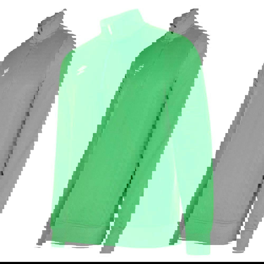 This men’s Club Essential half zip sweatshirt from Umbro is made from 100% polyester and finished in emerald. The design includes a stacked logo and a standing collar, with long sleeves for classic sweatshirt styling.