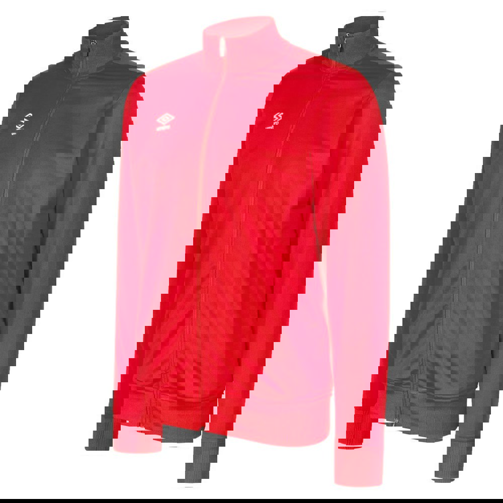 Refresh your outerwear rotation with the Umbro Club Essential jacket in vermillion. Made from 100% polyester, it has a clean finish with a stacked logo design. Long sleeves and a standing collar create a structured look, while ribbed detailing at the collar adds definition.