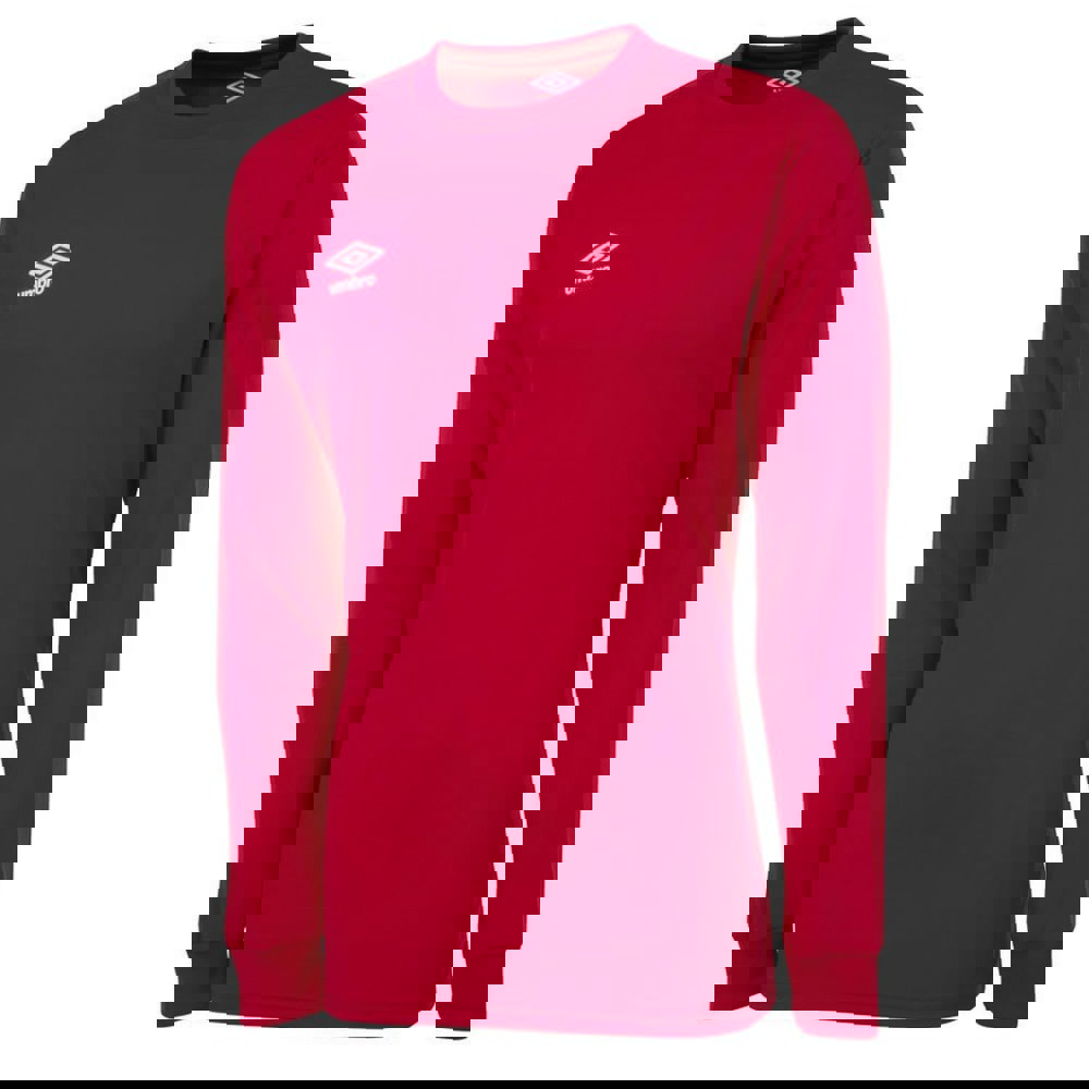 This long-sleeved jersey from Umbro is made from 100% polyester with a micro eyelet fabric construction. It is finished in vermillion and detailed with a stacked logo design for a clean, graphic look.