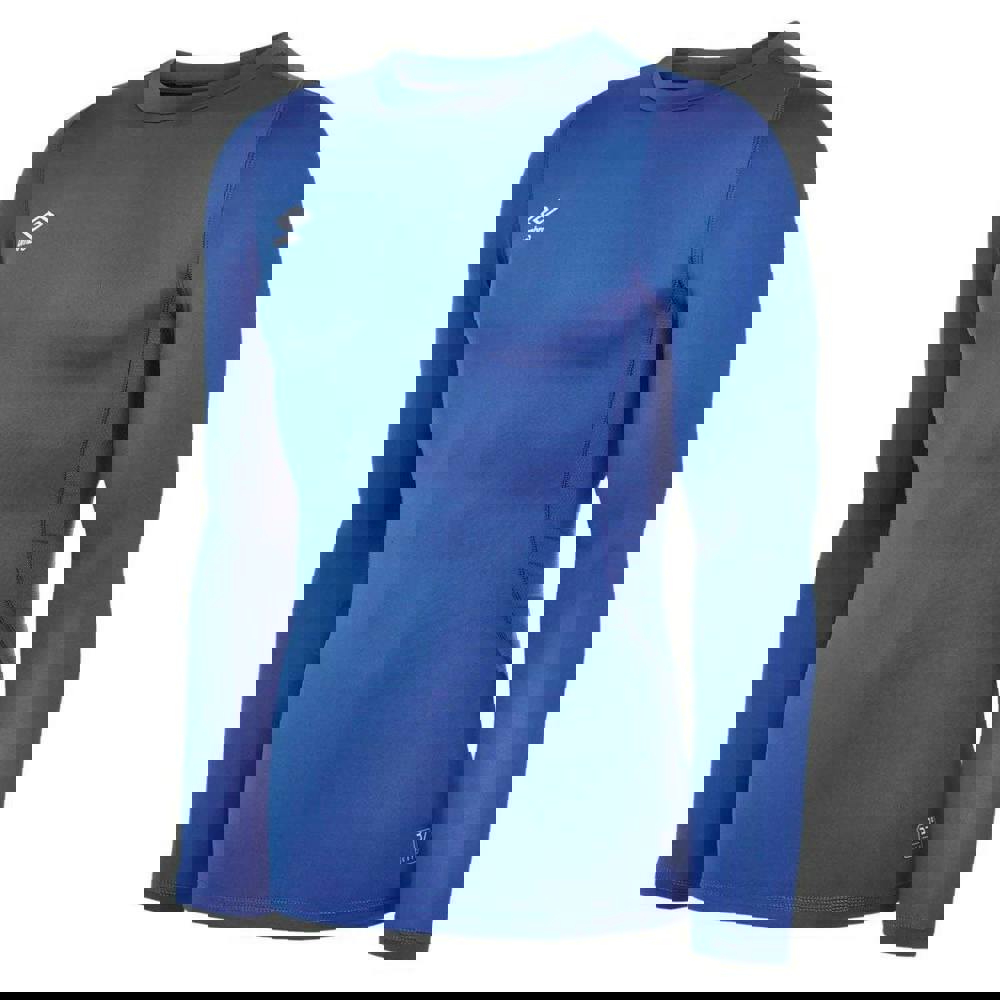 This men’s base layer top from Umbro is made from a polyester and elastane blend with a stretch fabric construction. It comes in royal blue with a plain finish and Umbro logo detailing.