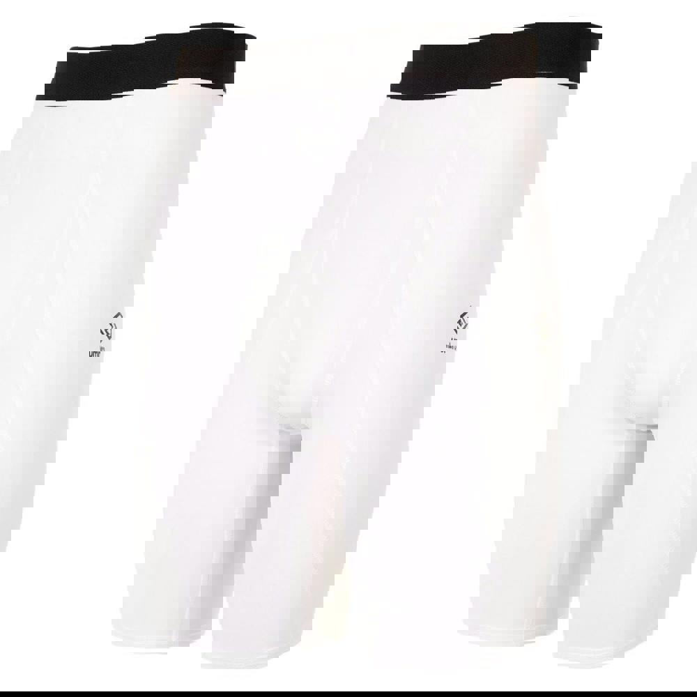 Umbro Mens Core Power Logo Base Layer Shorts in white are made from a polyester and elastane blend. The design includes a logo and an elasticated contrast waistband.