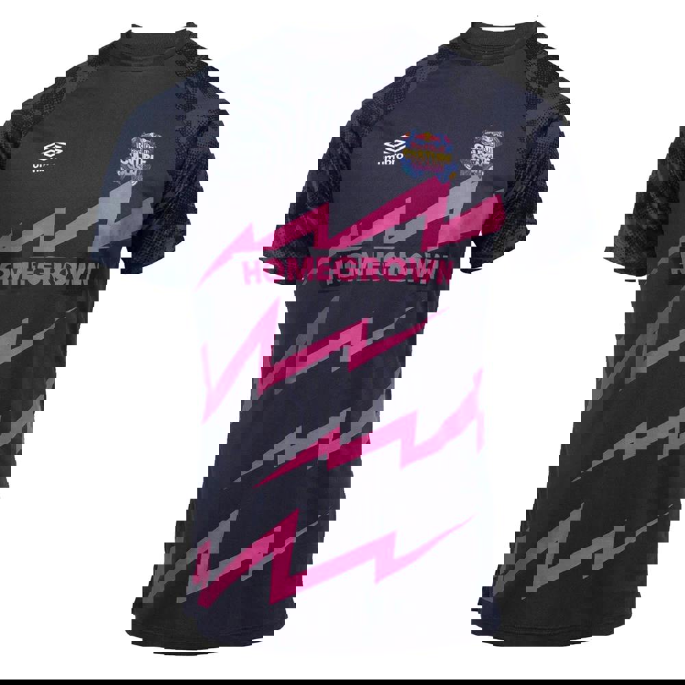 This Umbro Culture Clash Red Bull jersey comes in carbon and black with a printed, patterned logo and text design. Made from 100% micro polyester, it has a crew neckline with ribbed detailing and short raglan sleeves for a clean, sporty look.