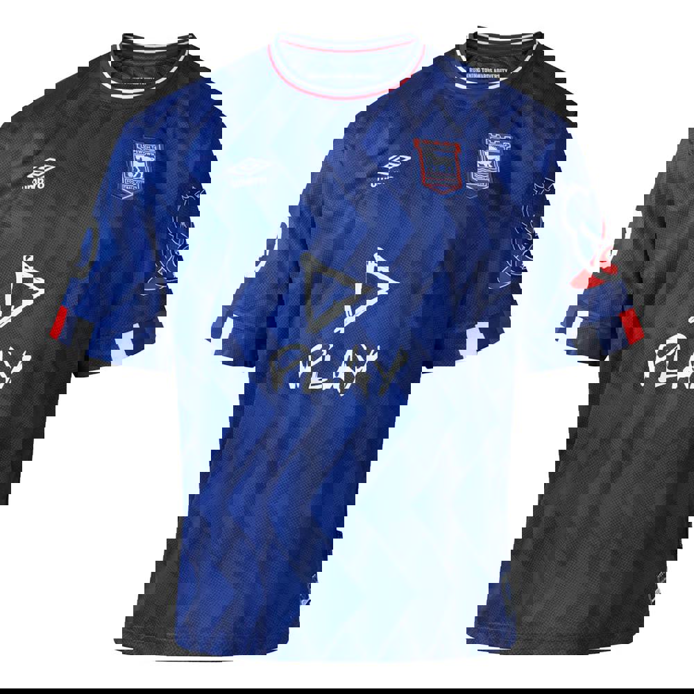 This Umbro men’s Ed Sheeran Ipswich Town FC jersey comes in blue with a crew neck and short sleeves. The design includes logo, number and text detailing, finished in an oversized, boxy fit.