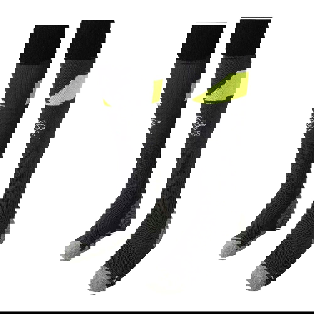 These Umbro men’s goalkeeper socks come in black and yellow with a contrast design and logo detailing. Built for matchday kit, they include cotton footbeds and an ergonomic footbed for structured underfoot support.